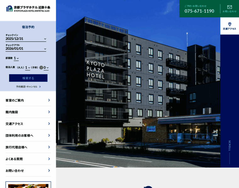 京都プラザホテル近鉄十条は、近鉄十条駅から徒歩5分、京都南IC・上鳥羽ICから車で約5分。京都駅八条口からタクシー約10分。駐車場は普通車23台、マイクロバス1台駐車可。観光・ビジネス・団体旅行に便利!大浴場や全室個別空調、無料Wi-Fiも好評