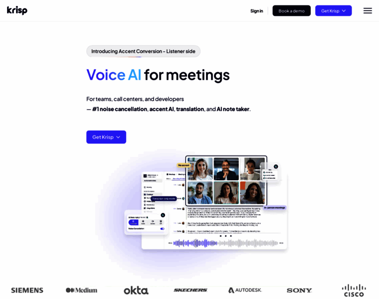 Clear calls, smarter meetings—powered by #1 noise cancellation. Krisp brings Voice AI with an AI Note Taker, Accent AI, and Call Center AI.