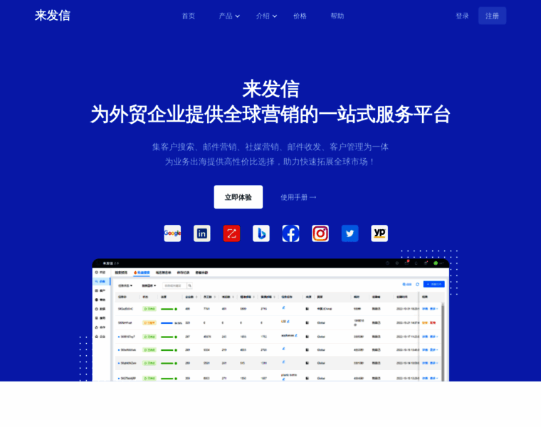 为外贸企业提供全球营销的一站式服务平台,集客户搜索、邮件营销、社媒营销、邮件收发、客户管理为一体,为业务出海提供高性价比选择,助力快速拓展全球市场!