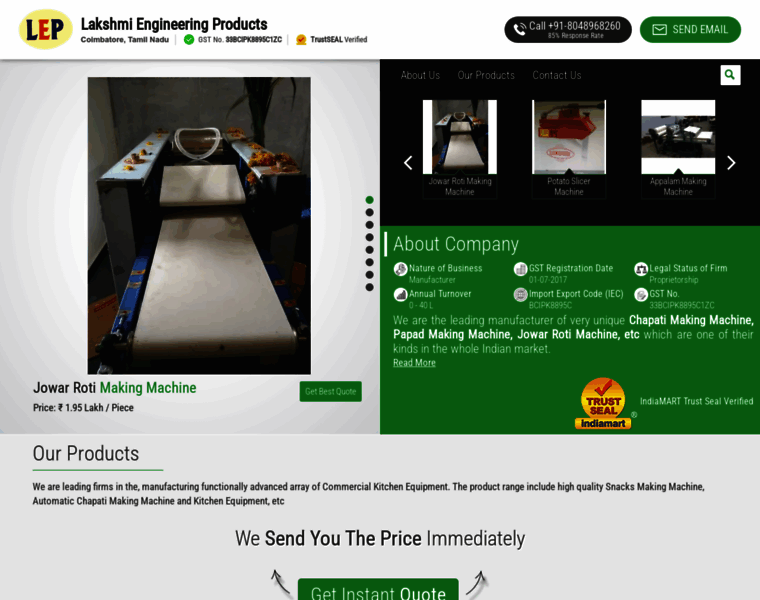 Lakshmi Engineering Products, Coimbatore - Manufacturer of Automatic Chapati Making Machine Manufacturers and Snacks Making Machine