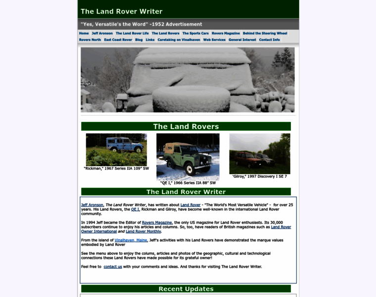 Articles on Land Rover automobiles and Land Rover life by Jeff Aronson, editor and writer on Land Rovers and British sports cars