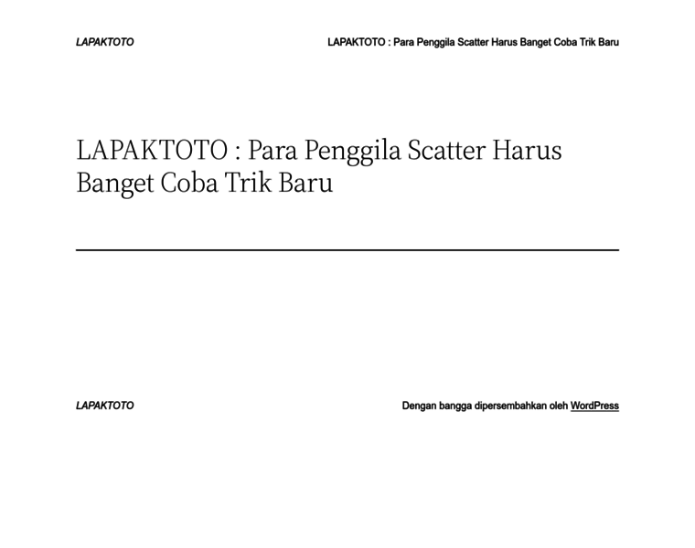 LAPAKTOTO : Para Penggila Scatter Harus Banget Coba Trik Baru