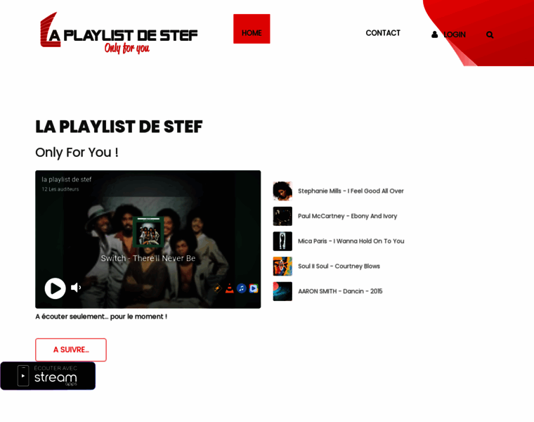 La playlist de Stef, only for you est une webradio qui vous propose un choix musical large entre jazz et soul. laplaylistdestef.fr vous propose de contribuer à sa programmation, avec la selection de.... vous nous proposez 60 titres qui rentreront en playlist avec votre prenom. A bientot sur la playlistdestef.fr