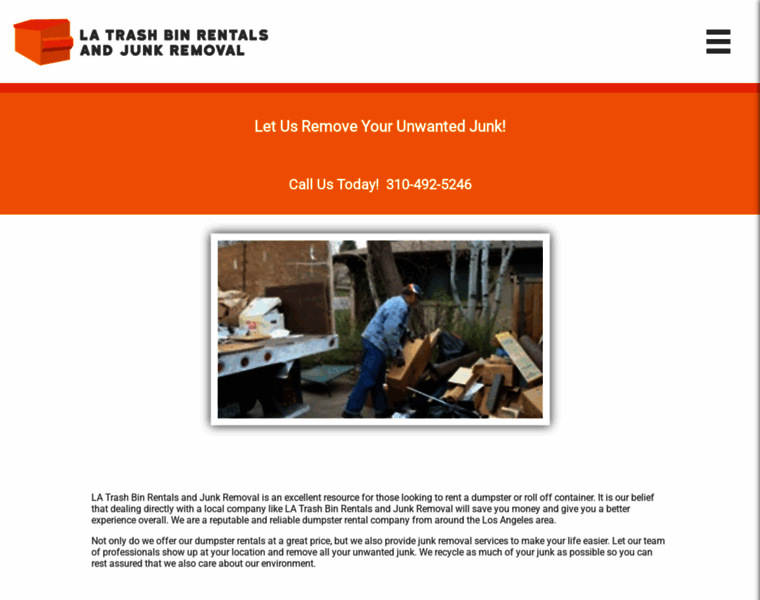 It is our belief that dealing directly with a local company like LA Trash Bin Rentals & Junk Removal will save you money and give you a better experience overall. 310-492-5246