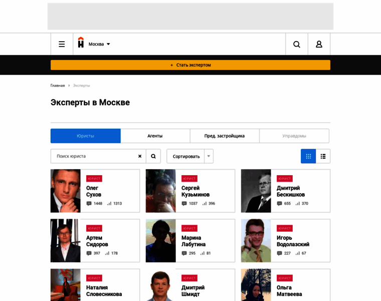 В данном разделе вы найдете экспертов рынка недвижимости, юристы, агенты, консультанты, смотри портфолио и отзывы людей, следите за рейтингом экспертов, выбирайте подходящего эксперта и начинайте сотрудничество онлайн