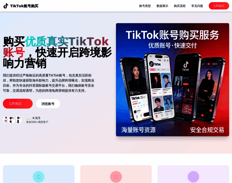 专业TikTok账号购买平台,提供真实活跃的抖音国际版账号,包含1000-50000+粉丝账号,安全交易,快速交付,售后保障,助力品牌跨境营销推广