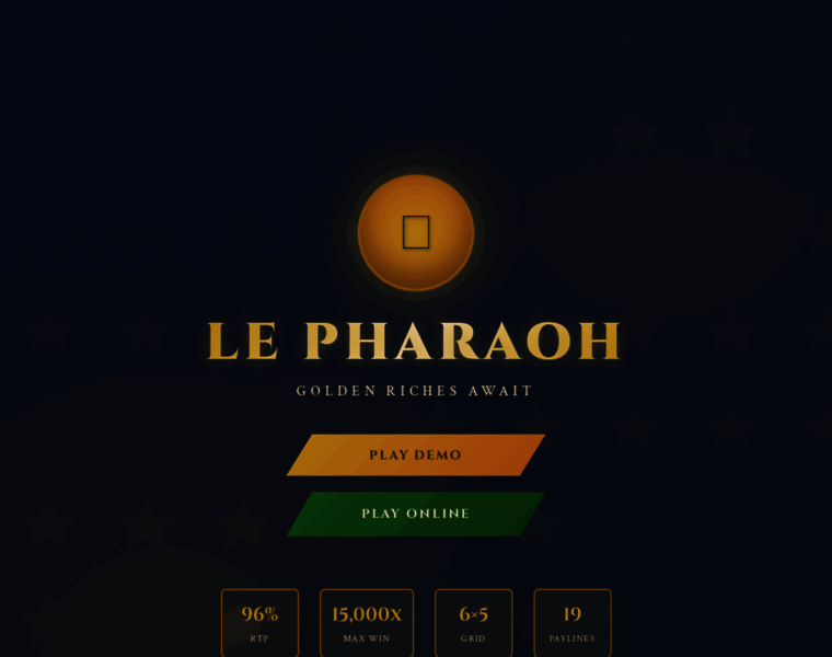 Le Pharaoh slot: 6×5 grid with Sticky Re-drops, Golden Riches mode, and 15,000x max win. Play the raccoon pharaoh's treasure hunt with 19 paylines and 96% RTP.