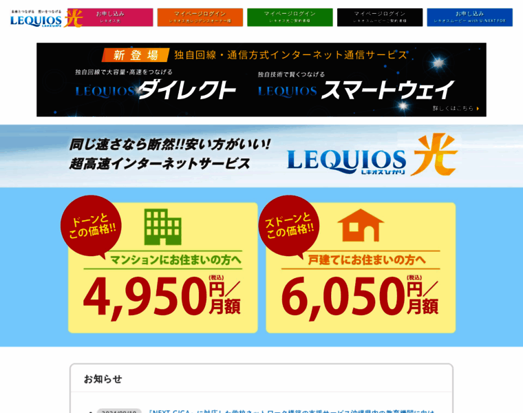 レキオス光 | LEQUIOS ダイレクト / LEQUIOS スマートウェイ 未来へつなぐ独自回線・通信方式インターネット提供サービス