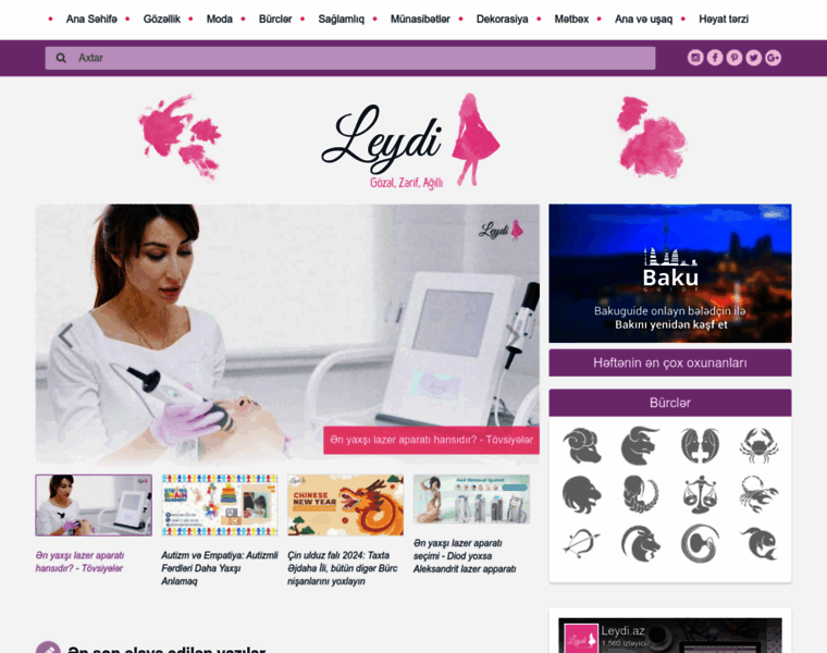 Leydi.az modadan bürclərə, psixologiyadan sağlamlığa qədər maraqlandığınız bütün mövzularda faydalı məqalə və məsləhətləri tapa biləcəyiniz qadın saytıdır.
