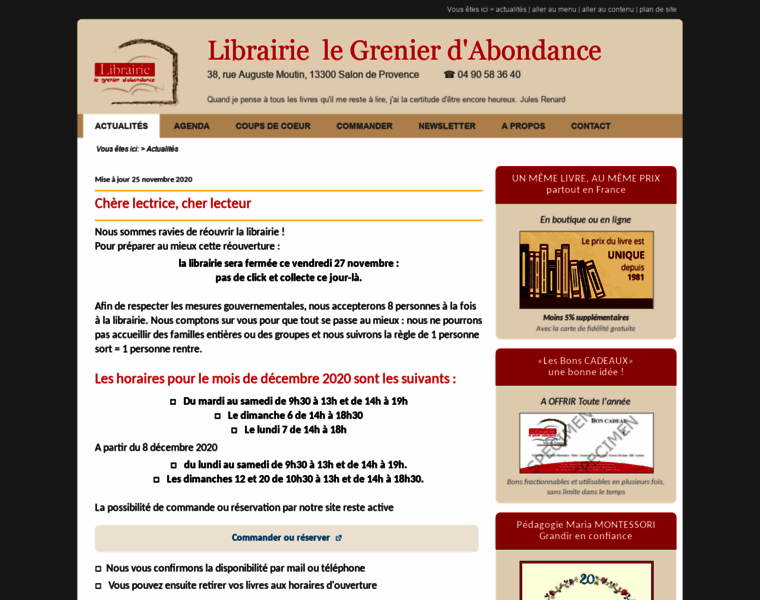 Bienvenue sur notre nouveau site Internet ...Librairie Le Grenier d'Abondance, Salon de Provence, Paca, librairie généraliste, indépendante, Label LIR