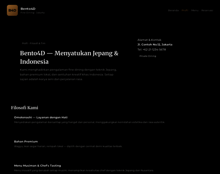 Tentang Bento4D — Fine Dining Jepang & Fusion di Jakarta