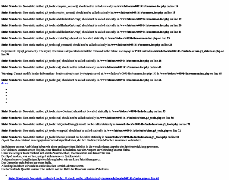 Liquid Fire Arts - Strict Standards: Non-static method g3_tools::_() should not be called statically in /www/htdocs/w009141e/index.php on line 15