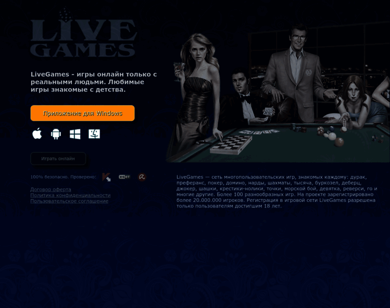 Livegames - многопользовательские онлайн игры: дурак, преферанс, покер, тысяча, нарды, шахматы, домино, буркозел, бильярд, шашки, деберц и многие другие