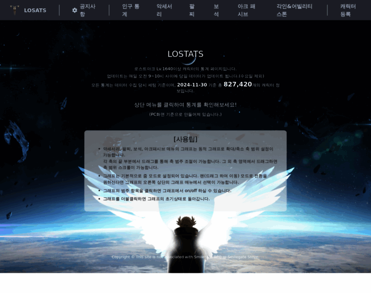 로스탯츠 - 로스트아크 인구, 악세서리, 팔찌, 아크패시브, 각인&어빌리티스톤 통계 페이지