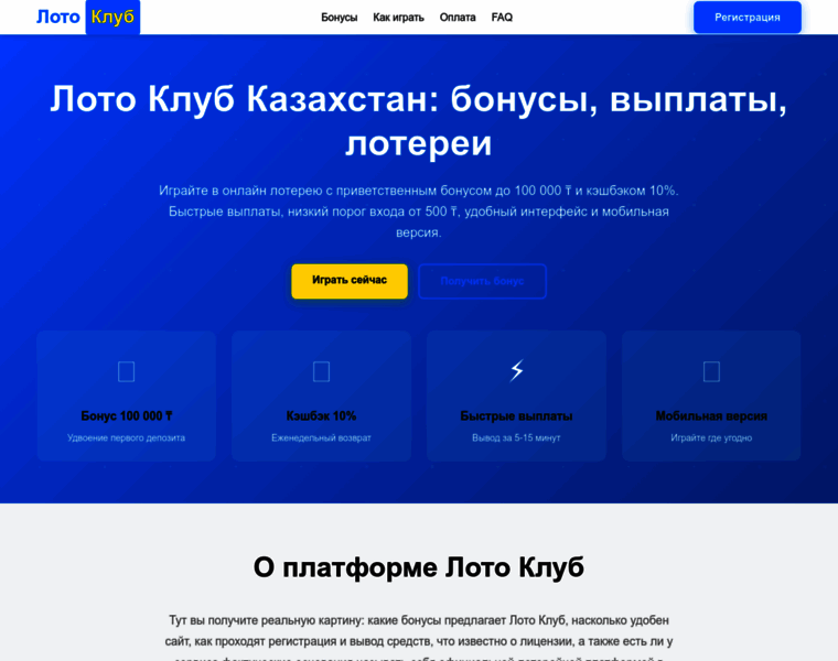 Лото Клуб Казахстан - официальная онлайн лотерея с бонусами до 100 000 ₸. Играть в лотерею онлайн, быстрые выплаты, кэшбэк 10%. Регистрация от 500 ₸. Играйте в Лото Клуб прямо сейчас!