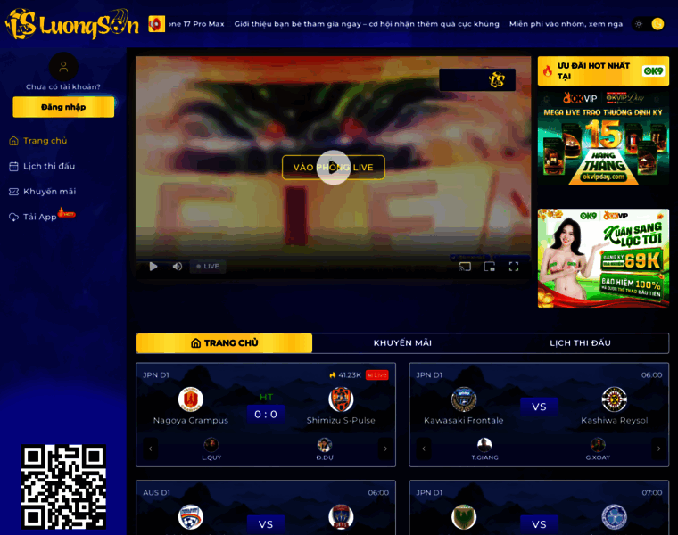 LuongSon TV - Điểm đến số 1 cho người yêu bóng đá. Xem trực tiếp các trận đấu nóng hổi trên toàn thế giới với chất lượng Full HD tốt nhất. Cung cấp thông tin tỷ số trực tiếp, tin tức nhanh chóng và bản tin bóng đá hàng ngày. Đừng bỏ lỡ cơ hội tham gia cộng đồng đam mê bóng đá tại LuongSon TV!