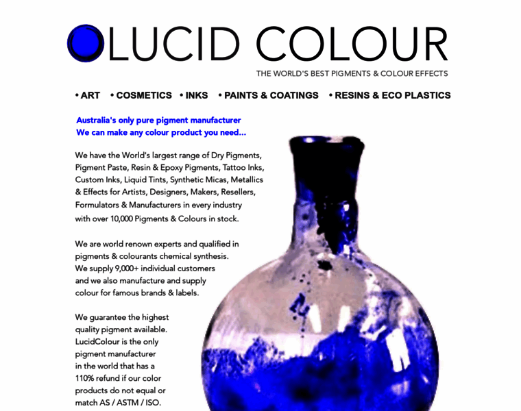AUSTRALIA'S ONLY PIGMENT MANUFACTURER - ART, RESINS, PAINT, COSMETICS, INKS, PURE PIGMENT PASTES, METALLICS, EFFECTS, LIQUID COLOUR, LUCID COLOUR