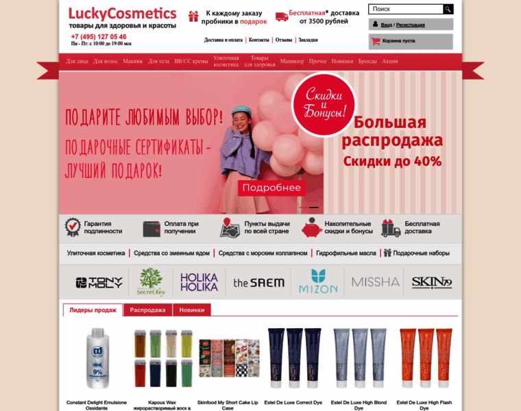 Интернет-магазин LuckyCosmetics предлагает широкий выбор корейской косметики самых популярных брендов. Доставка в Санкт-Петербург, Москву и по всей России