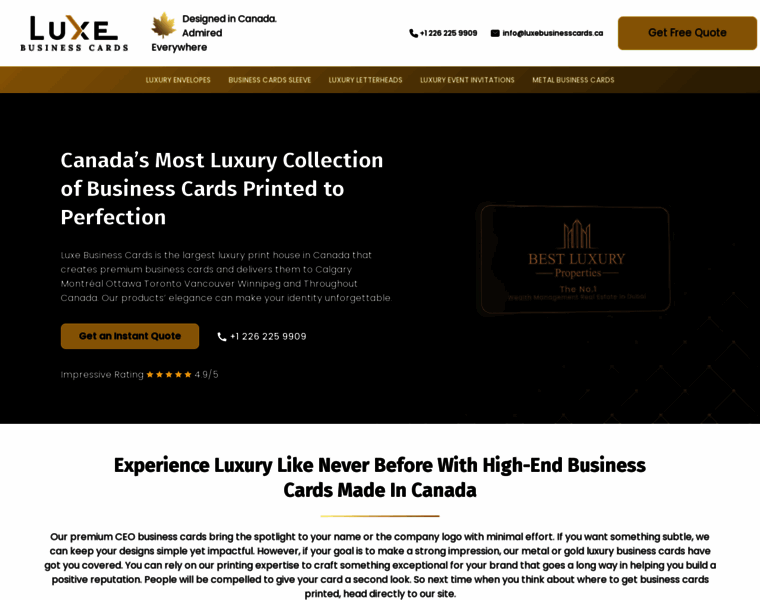 Luxe Business Cards Canada *Premium Printing *Free Design