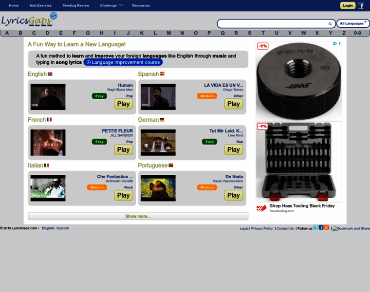 Lyricsgaps.com - Learn Languages Online - Exercises Listening - Fill in the gaps