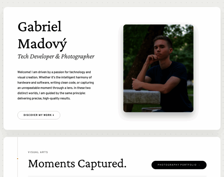 Personal portfolio of Gabriel Madový. Discover my work in software engineering, secure networks, and photography (MG Captures).