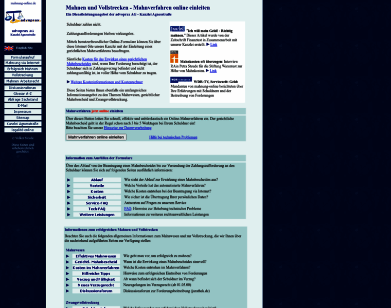 Mahnung-Online - Erwirkung eines gerichtlichen Mahnbescheids via Internet in drei bis fnf Werktagen - unbrokratisch - schnell - kostenneutral - zudem viele Informationen zum Mahnwesen