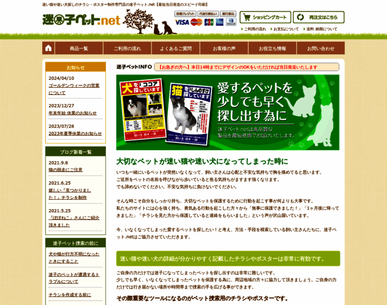 迷子ペット探しのチラシ作成専門店の迷子ペット.net