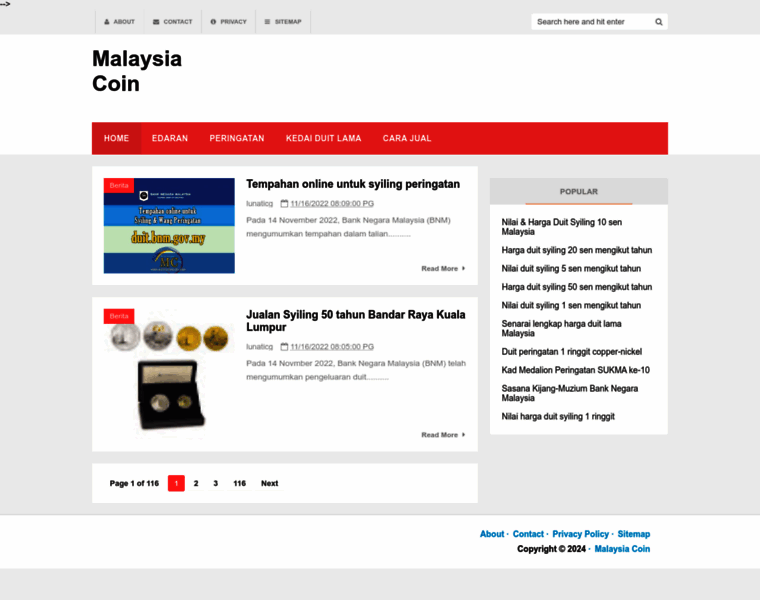 Blog duit syiling Malaysia dengan informasi mengenai harga duit lama, jual-beli, spesifikasi, buku dan maklumat beserta gambar duit Malaysia.