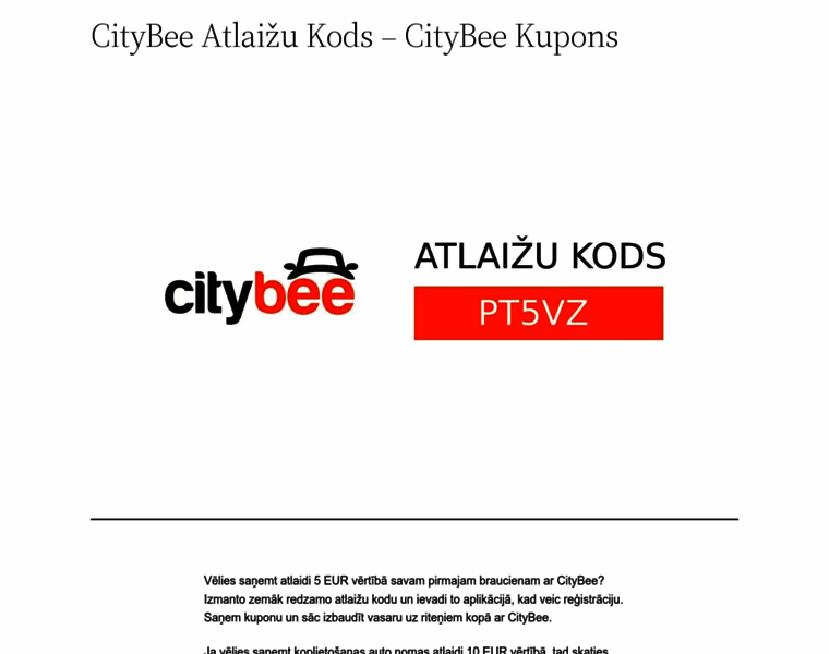 CityBee Atlaižu Kods (Jaunākais 2024) - €10 vai €5 Kupons