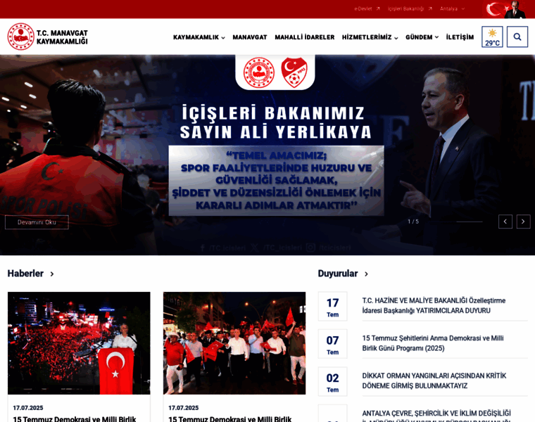 Manavgat Kaymakamlığı Resmi İnternet Sitesidir.