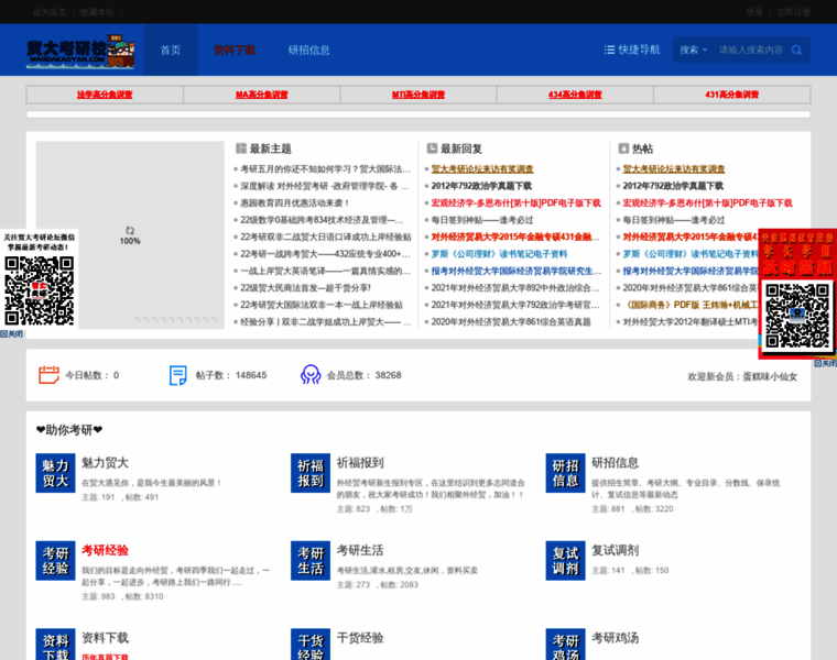 对外经济贸易大学考研论坛BBS , 让报考对外经济贸易大学的研友们轻松抱团,已帮助数万研友成功考入贸大,提供对外经济贸易大学资料考研真题、考研经验和真题笔记资料、考研经验分享、对外经济贸易大学研招信息、考研辅导班等信息,让我们聚集在此,告别孤单奋战,誓入贸大!
