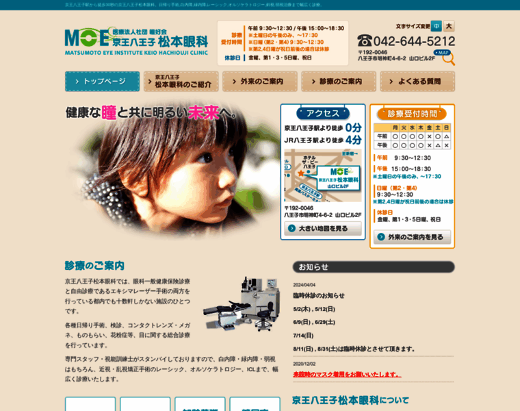 京王八王子松本眼科|日帰り手術,白内障,緑内障,屈折矯正手術(PRK),オルソケラトロジー,斜視,弱視治療|日曜診療