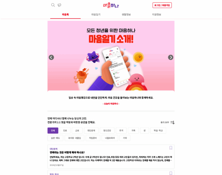 마음하나, 마음이 단단해지는 고민상담 커뮤니티