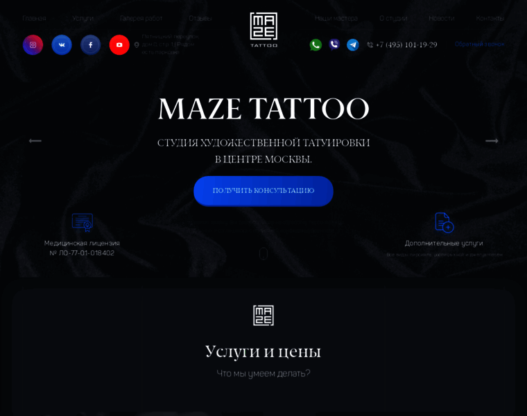 Хотите сделать тату или пирсинг в Москве, но не знаете где? Команда опытных мастеров из студии художественной татуировки Maze Tattoo помогут Вам в этом!