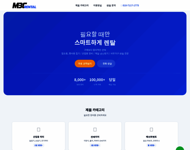 MBC렌탈 - 산업용 장비 렌탈 전문. 히터, 컨베이어, 파렛트, 안전펜스 등 합리적인 가격으로 렌탈하세요