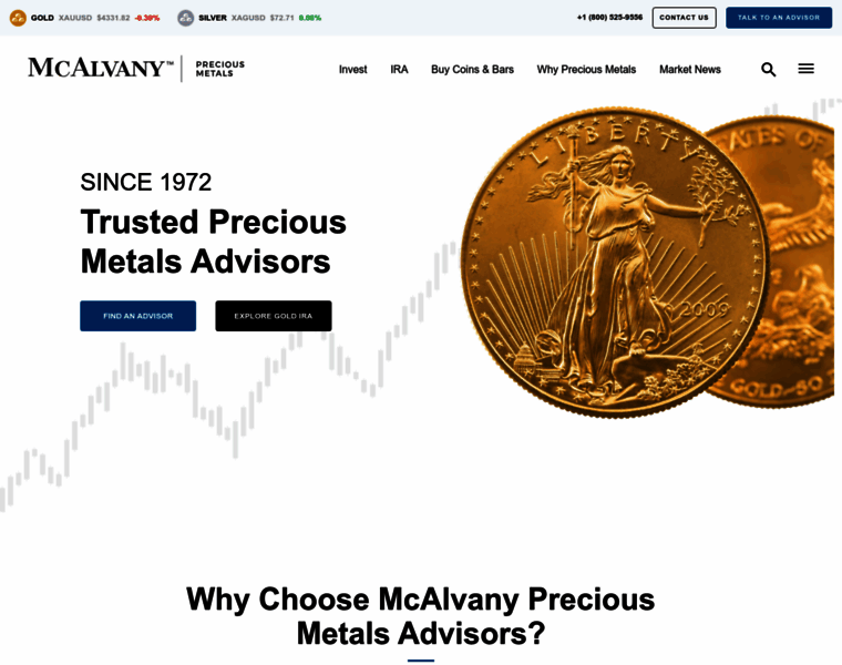Since 1972 McAlvany Precious Metals has helped thousands of Clients invest in Gold, Silver, Platinum, and Palladium. Contact us to secure your retirement today.