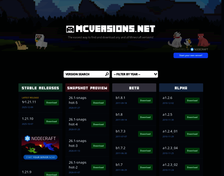 MCVersions.net offers an archive of Minecraft Client and Server jars to download, for both current and old releases!