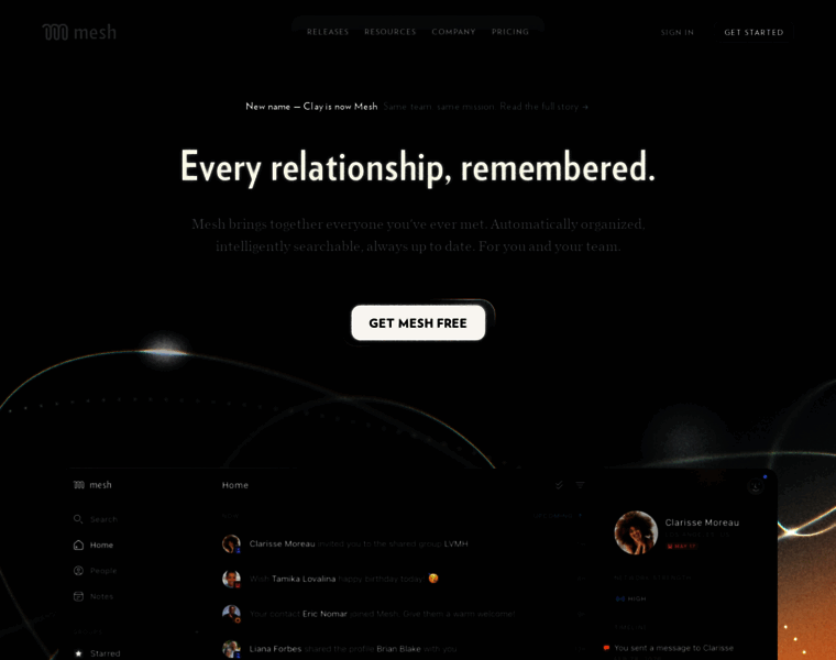 Mesh is a beautiful rolodex and CRM for iPhone, Mac, Windows, and web, built automatically to help you manage your personal and professional relationships.