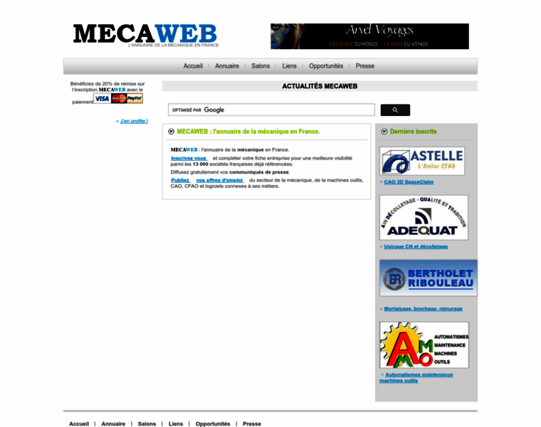 Mecaweb, l’annuaire de la mécanique en France. Toutes les informations sur les sociétés de la mécanique générale, de précision, machines outils, logiciels