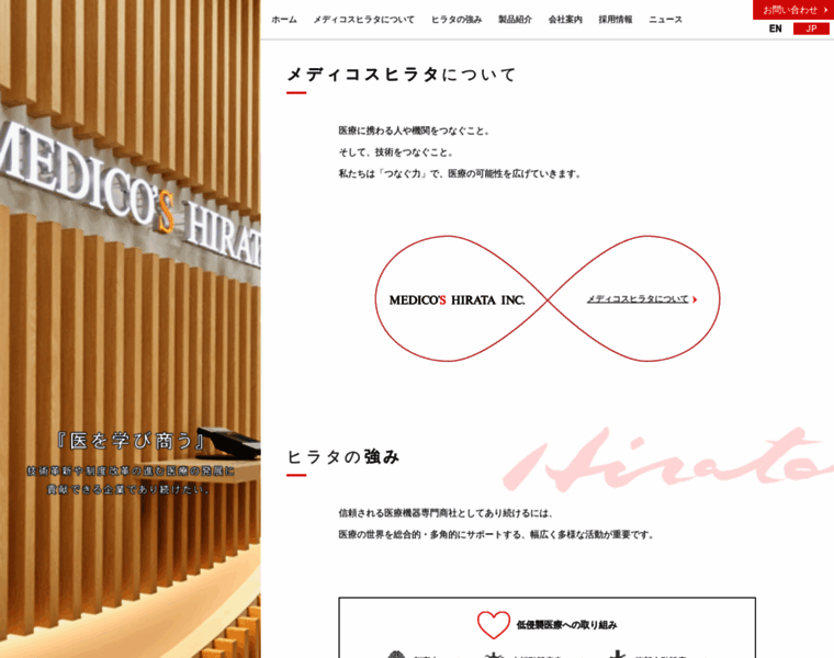 株式会社メディコスヒラタの公式サイトです。メディコスヒラタの紹介や強み、低侵襲医療への取り組み、会社案内、採用情報、ニュースなどを掲載しています。
