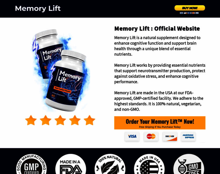Memory Lift is a natural supplement designed to enhance cognitive function and support brain health through a unique blend of essential nutrients.. Order Your Memory Lift™ Now.