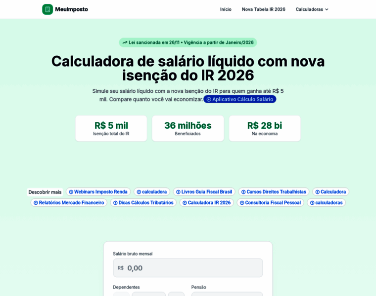 [Atualizado] Calculadora de Salário Líquido 2026 | Nova Tabela Imposto de Renda 2026