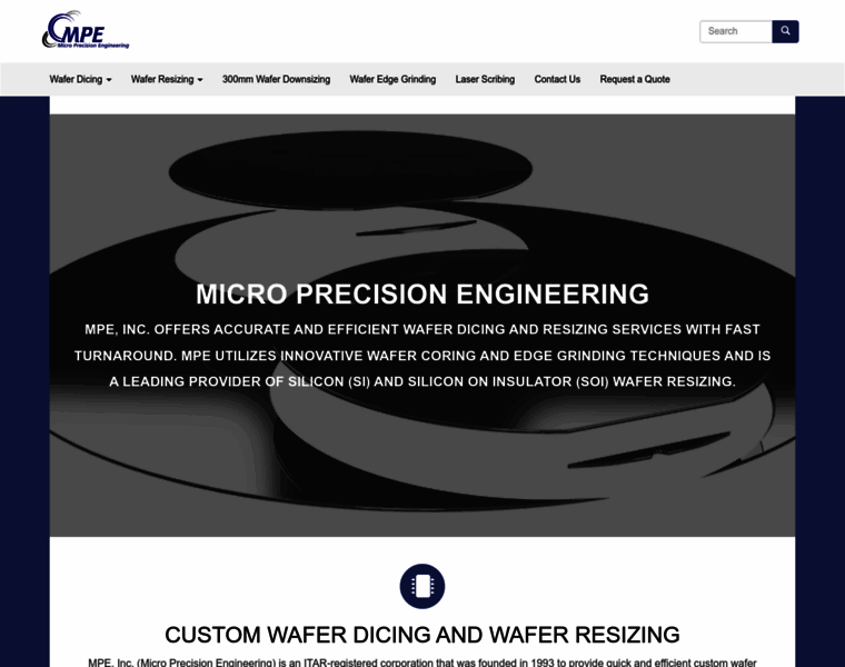 Micro Precision Engineering (MPE) is based in Texas and offers wafer dicing services, custom silicon wafer resizing, and wafer coring and edge grinding services on many different materials.