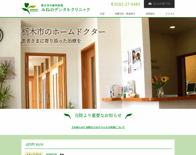 栃木の歯科「みねのデンタルクリニック」のホームページ。栃木の皆様の歯科のお悩みに役立つ治療法をご説明しています。栃木にある当歯科では、地域のみなさまとの触れ合いを大切にしながら歯科治療をご提供しています。