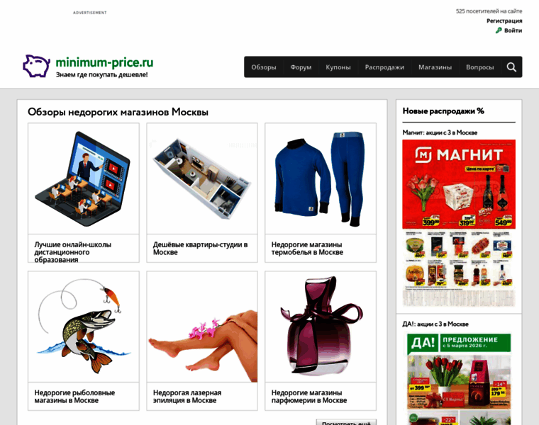 Minimum-Price.ru - обзоры магазинов, исследования оптово-розничных компаний, рекомендации покупателям. Информация о действующих скидках и распродажах в дисконтах и стоках