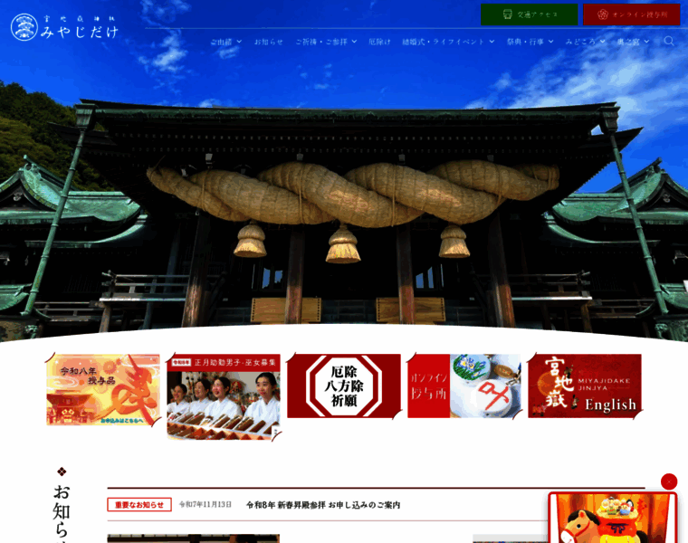 宮地嶽神社(みやじだけじんじゃ)の公式ホームページです。福岡県福津市に位置する当社は、全国に鎮座する宮地嶽神社の総本宮です。