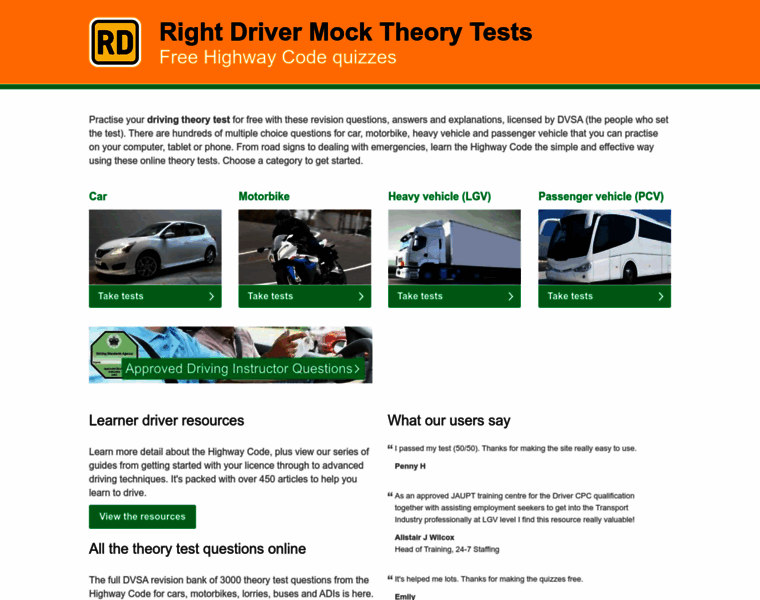 Free mock theory tests. Official questions for the car, motorbike and heavy vehicle learner licence exam