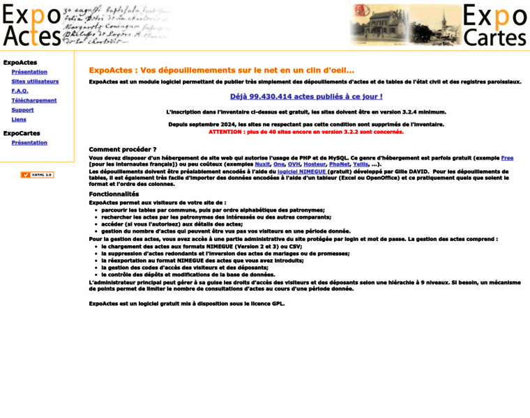 ExpoActes est un module logiciel gratuit permettant de publier très simplement des dépouillements d'actes et de tables de l'état civil et des registres paroissiaux.