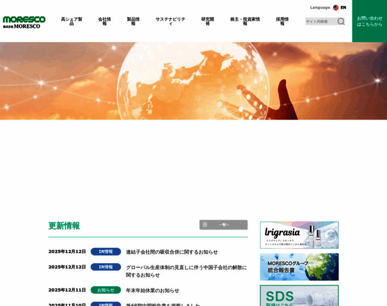 MORESCO(神戸市)特殊潤滑油(HD、自動車等)・素材(流パラ)・ホットメルト接着剤などの化学品、世界のオンリーワン製品のメーカーです。