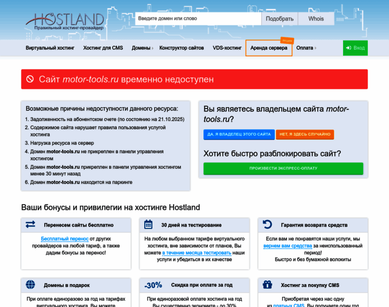 This website is hosted with Hostland ltd, which reserves the following IP addresses for motor-tools.ru: 185.26.122.82. Moreover, DNS used with this website include ns.hostland.ru, ns3.hostland.ru.